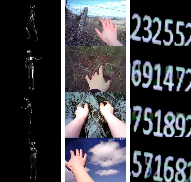 Total Parts is a three-channel video installation that documents a series of Blindfolded Camera Walks the artist conducted in the historic natural landscape of Salisbury Plane (UK). The project considers the impact of digital recording technology on visual and non-visual sensing.