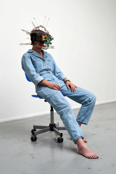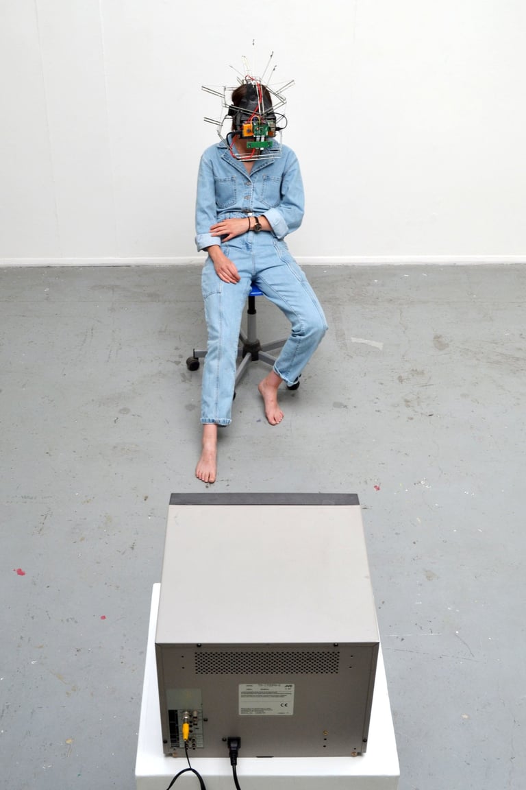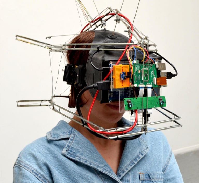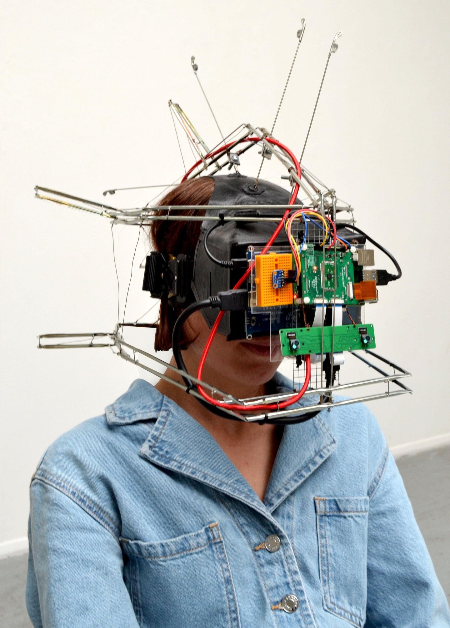 The handmade VR headset streams the wearer’s vision to them in 3D via YouTube, allowing the wearer to only see through the digital image and to experience real life through the glitchy nuances of the internet. You and I investigates the alternative forms of perception and embodiment that can evolve from the human-computer relationship.